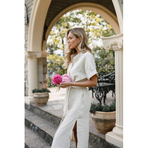 52 плаття міді лляне з ґудзиками